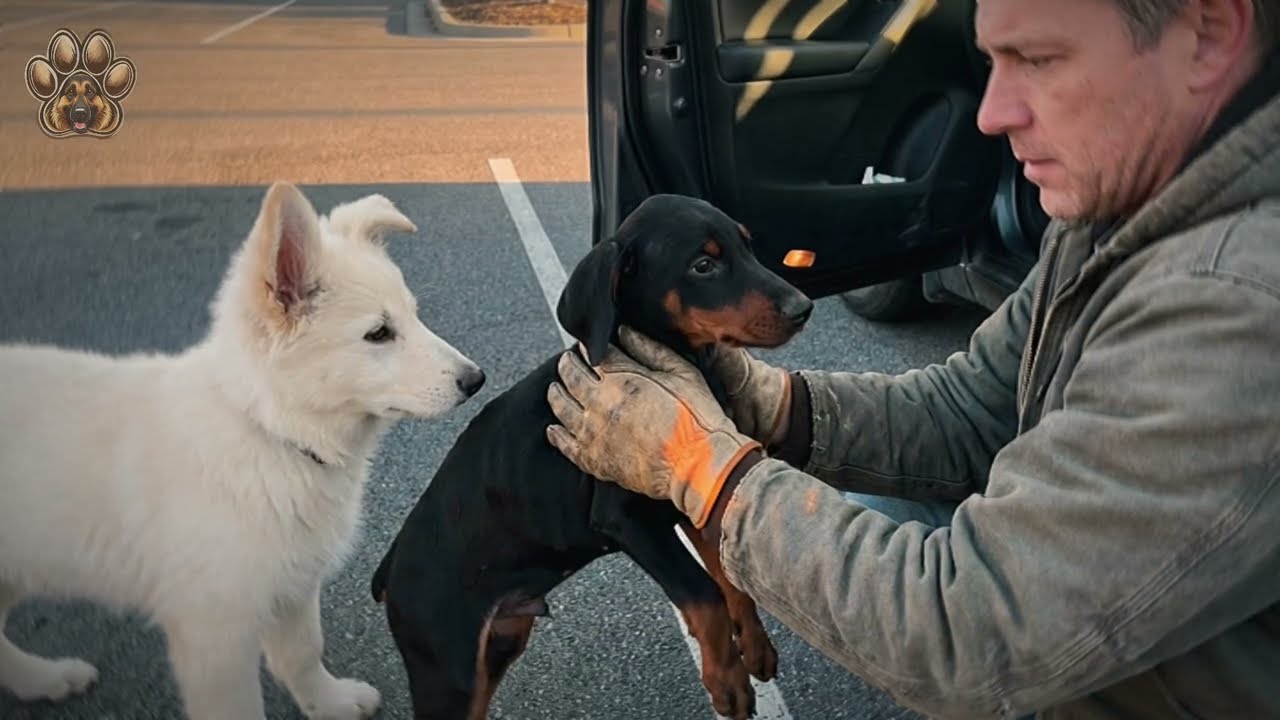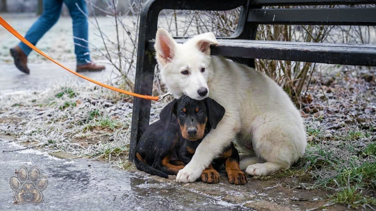 Sa halip, humiga siya sa tabi ng Doberman, idinikit ang katawan niya rito—parang sinusubukang painitin siya. Isang eksenang hindi ko makalimutan: isang malusog na tuta, kusang piniling manatili sa tabi ng isang asong halos wala nang lakas.
