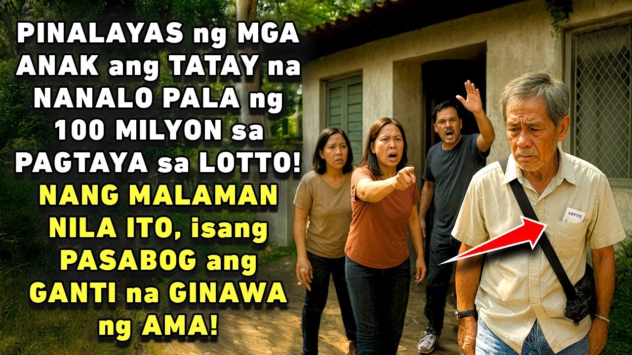 Hindi lang iyon ang pasabog. Lumabas ang balita na ang 100 milyong napanalunan ni Mang Berting ay bahagi lamang ng kanyang swerte. Lingid sa kaalaman ng lahat, mayroon pa siyang tinatagong 200 milyong piso sa isang hiwalay na trust fund na inilaan niya sana para sa magiging apo niya, ngunit dahil sa ginawa ng mga anak, ang halagang ito ay idinagdag na rin sa foundation. Lumitaw si Mang Berting mula sa loob ng isang itim na luxury car, maayos ang bihis at malakas ang katawan. Tiningnan niya ang kanyang mga anak na ngayon ay pilit na kumakapit sa kanyang mga binti, humihingi ng tawad, at umiiyak. “Tay, patawad! Nagkamali kami! Huwag mo kaming gawing pulubi!” iyak ni Gina. Ngunit sa pagkakataong ito, matigas na ang puso ng ama. “Ibinigay ko sa inyo ang langit, pero pinili ninyong ipakita sa akin ang impyerno. Ngayon, mararanasan ninyo kung paano mamuhay sa paraang itinrato ninyo sa akin.”