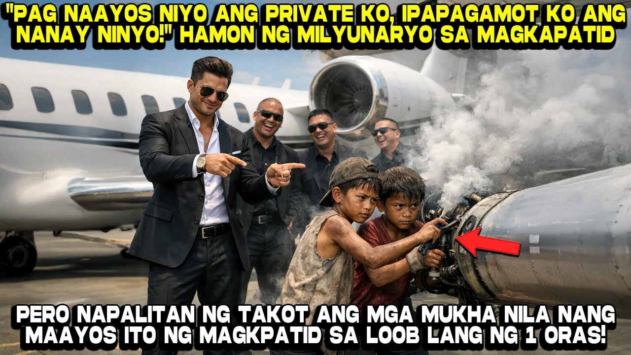 “Ayos! Gusto ko ang tapang mo, bata,” ngisi ng Don, habang dahan-dahang tinatanggal ang kanyang mamahaling relo. “Pero sa mundong ito, walang libre. Kapag ginalaw mo ang makina at lalo mong sinira… o kapag hindi umandar ‘yan sa loob ng isang oras… ipapakulong kita. At ang Nanay mo? Hahayaan nating mabulok dito sa labas ng hangar. Deal?”