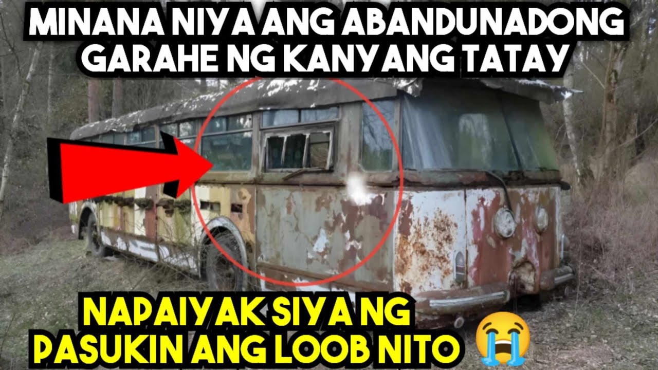 Ang loob ay puno ng alikabok. May mga lumang gulong, sirang makina, at mga kahon ng tools. Sa gitna, may isang kotseng nakatalukbong ng makapal na trapal na kulay abo.